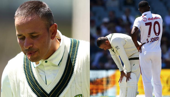 ایڈیلیڈ میں آسٹریلیا کو جیت کے لیے ایک رن کی ضرورت تھی تو اس دوران شمر جوزف کی باؤنسر گیند عثمان خواجہ کے چہرے پر لگی جس سے ان کے جبڑے سے خون بھی نکل آیا۔