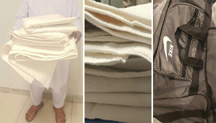 ملزم نے احرام کے 3 تولیوں کو ہیروئن کے محلول سے بھگو رکھا تھا۔