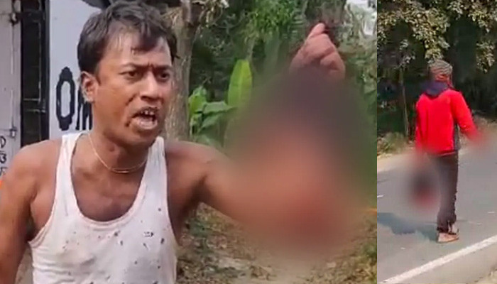 بھارتی میڈیا کے مطابق سڑک پر پھرنے والے ملزم کی ویڈیو لوگوں نے بنائی جس کے ایک ہاتھ میں اس کی مقتول بیوی کا سر تھا اور دوسرے ہاتھ میں چھری تھی۔
