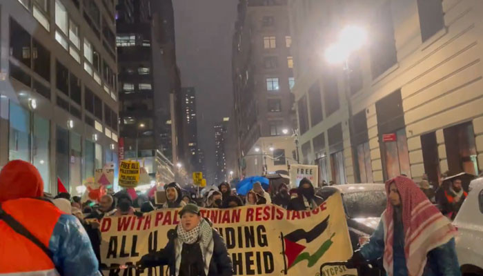 سخت سردی کے باوجود امریکا کے شہر نیویارک میں غزہ کی حمایت میں احتجاجی ریلی نکالی گئی۔