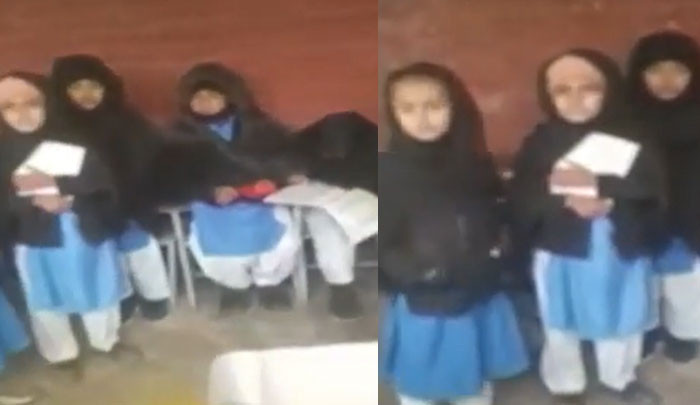 طالبات کا کلاس روم دفتر میں تبدیل کردیا گیا، بچیاں سخت سردی میں اسکول کے صحن میں پڑھنے پر مجبور ہیں۔