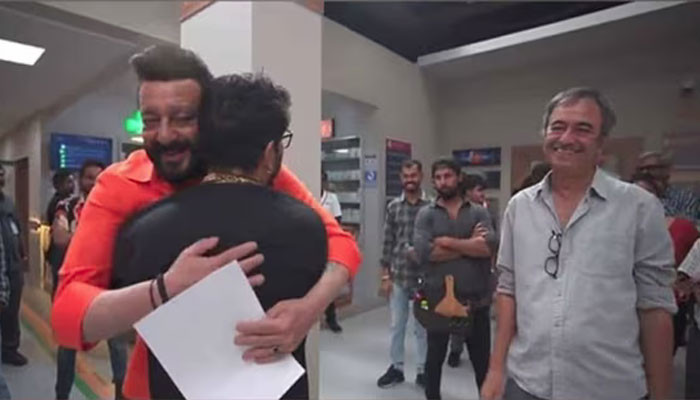 گزشتہ ہفتے سامنے آنے والی ویڈیو میں سنجے دت منا بھائی کے گیٹ اپ میں سامنے آئے اور انہوں نے راج کمار ہیرانی کے ساتھ چہل قدمی کی۔