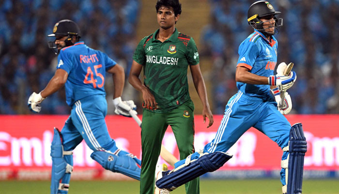 کرکٹ ورلڈ کپ میں بھارت نے بنگلادیش کو 7 وکٹوں سے شکست دے کر اپنا مسلسل چوتھا میچ جیت لیا، اس فتح کے بعد نیوزی لینڈ سے بہتر رن ریٹ کی وجہ سے میزبان ٹیم پوائنٹس ٹیبل پر پہلی پوزیشن پر آگئی۔