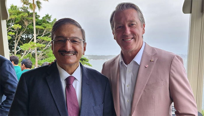 چیئرمین پاکستان کرکٹ بورڈ (پی سی بی) منیجمنٹ کمیٹی ذکا اشرف کی سڈنی میں سابق ٹیسٹ کرکٹر گلین میک گرا سے ملاقات ہوئی ہے۔