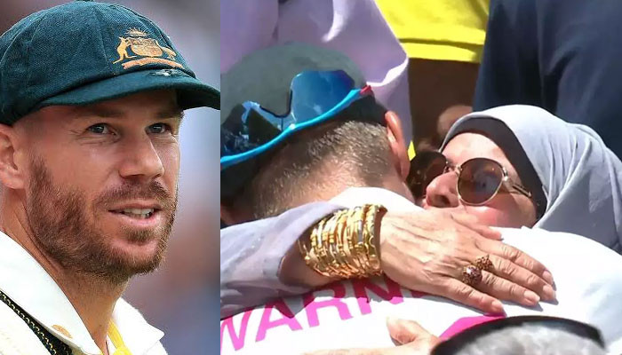 آسٹریلوی کرکٹر ڈیوڈ وارنر نے پاکستان کے خلاف کیریئر کے آخری ٹیسٹ میچ کے بعد ساتھی کرکٹر عثمان خواجہ کی والدہ کو گلے لگا لیا۔