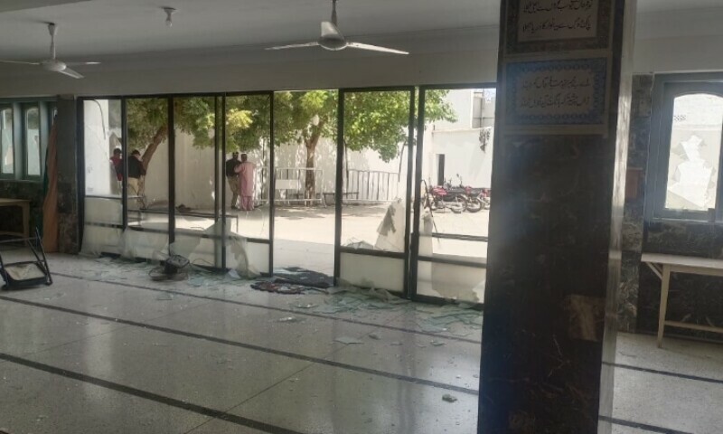 Jamshed Quarters Superintendent of Police (SP) Farhat Kamal told Dawn.com that around 20 to 25 persons broke into the building and damaged minarets and window before fleeing the scene.