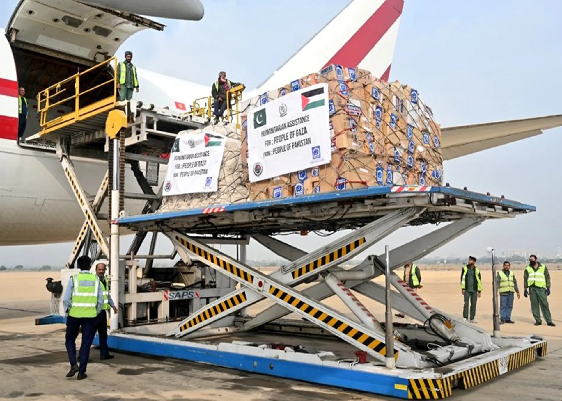 While speaking at the moment, Dr. Hafeez ur Rehman, President Alkhidmat Foundation Pakistan, highlighted that the sixth shipment, made possible with the support of Alkhidmat Foundation, NDMA, and Pakistan Air Force (Shaheen Airport Services), includes 45 tons of prepared food, 30 tons of tents, 25 tons of medicine, and 5 tons of blankets. He emphasized the unwavering solidarity of the government and people of Pakistan with the Palestinian brothers and sisters during this hour of crisis, affirming continued support.