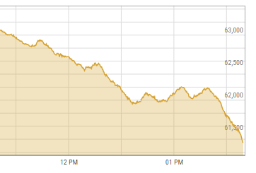According to the PSX website, the KSE-100 index plunged by 1484.58 points at 1:40pm to sink to 61,348.45, down 2.21 per cent from the previous close of 62,833.03.