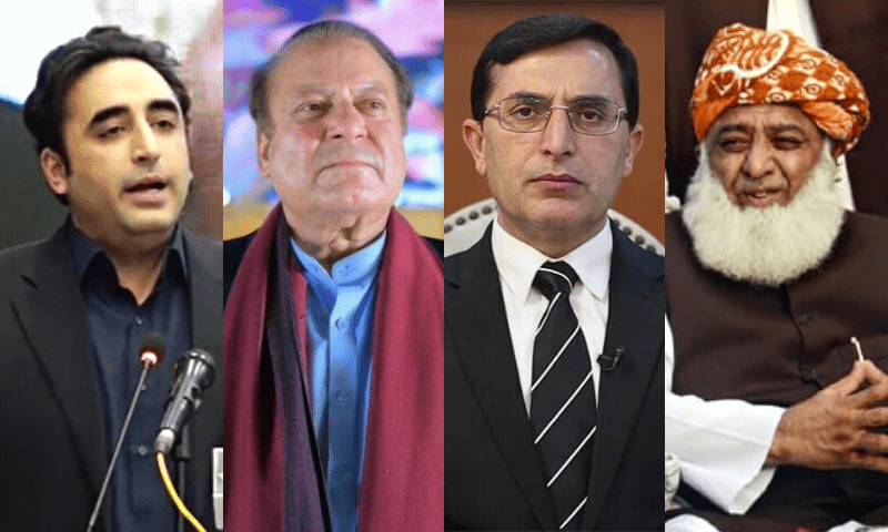 Header image: This photo combo shows (from L to R): Bilawal Bhutto-Zardari, Nawaz Sharif, Gohar Ali Khan and Maulana Fazlur Rehman. — File photos
