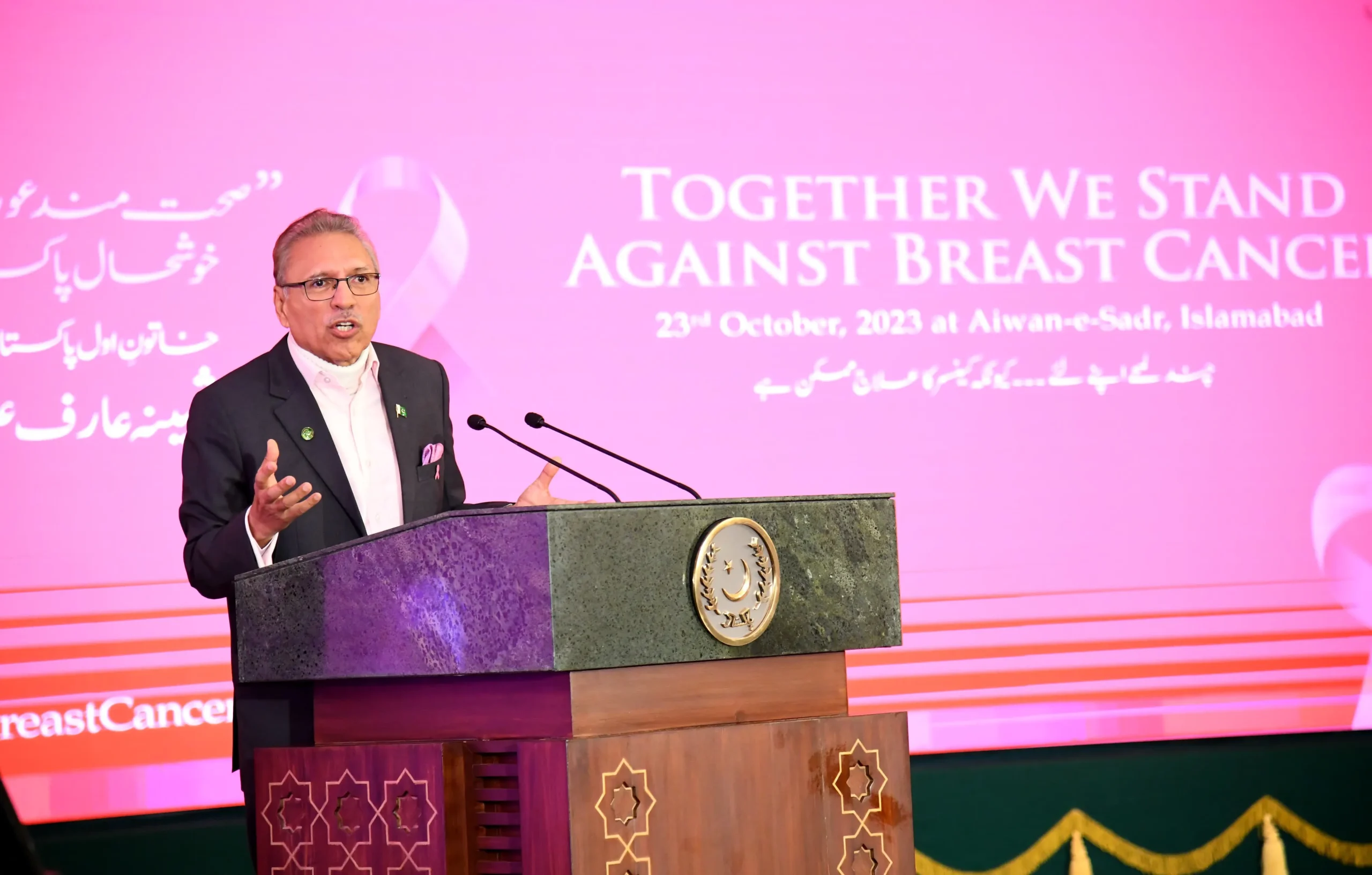 Addressing the Breast Caner Awareness Programme here, the president said awareness about other key health issues including mental health, stunting, and women health should also be raised along with the breast cancer awareness campaign as it was very important to keep woman healthy for a healthy nation. Highlighting the importance of family system in the country, the president said that a woman was the key member of a family that must be kept healthy, financially empowered and also be kept safe from any kind of harassment in the society. He said empowering the women economically was linked with the overall economic growth of the country. He said in Pakistan 24% of total population was suffering from mental disease that was due to a number of reasons including diseases, and financial issues. President Alvi also stressed the need to control population by increasing the access of the people to long term contraceptive products as it was key to development of the country both in terms of health and economy. Citing China’s example, the president said the country’s rapid development was due to its special focus on health and education. He maintained that due to lack of resources in the country, prevention should be focused to avoid chronic disease at later stage.
