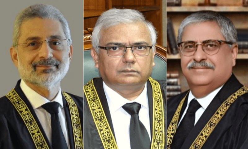 A three-member bench — including Chief Justice of Pakistan Qazi Faez Isa, Justice Aminuddin Khan and Justice Athar Minallah — have taken up the pleas today.