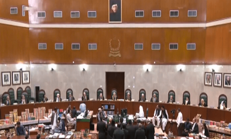 Headed by CJP Isa, the bench consisted of Justice ardar Tariq Masood, Justice Ijazul Ahsan, Justice Syed Mansoor Ali Shah, Justice Munib Akhtar, Justice Yahya Afridi, Justice Aminuddin Khan, Justice Sayyed Mazahar Ali Akbar Naqvi, Justice Jamal Khan Mandokhel, Justice Muhammad Ali Mazhar, Justice Ayesha A. Malik, Justice Athar Minallah, Justice Syed Hasan Azhar Rizvi, Justice Shahid Waheed and Justice Musarrat Hilali.