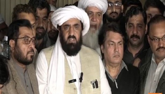 Following the meeting, representatives from JUI-F, Hafiz Hamdullah, and Barrister Saif from PTI addressed the media, stating that both parties concurred that the true mandate of the people was “usurped” on February 8.