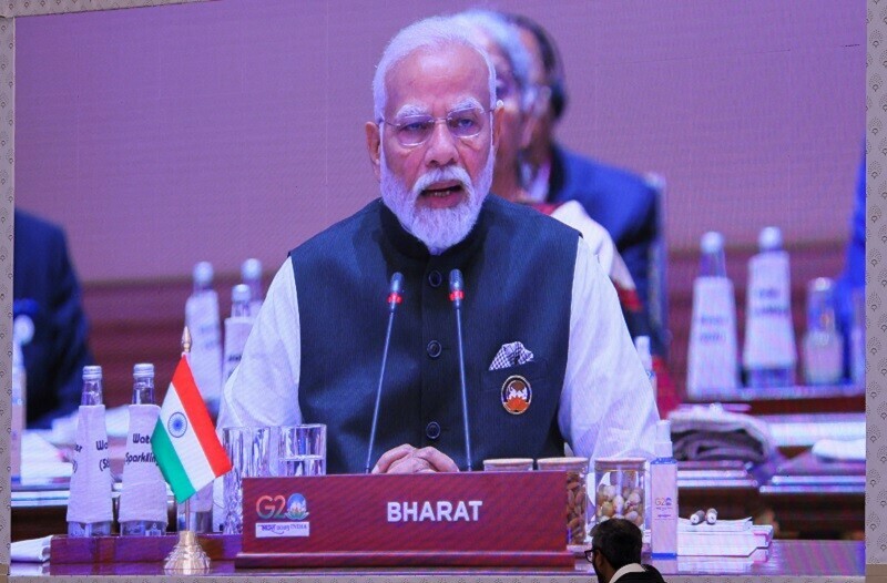 Speaking in Hindi, the language spoken by a majority of the population, Modi said “Bharat welcomes the delegates as the President of the G20”.