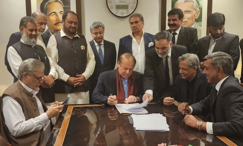 ISLAMABAD: Former prime minister Nawaz Sharif signed applications at the Islamabad International Airport on Saturday to restore pending appeals against his convictions in the Avenfield Apartments and Al-Azizia references.