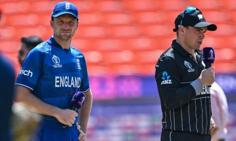 New Zealand won the toss and put defending champions England in to bat in the World Cup opener on Thursday with the English missing their talisman Ben Stokes due to a hip injury.