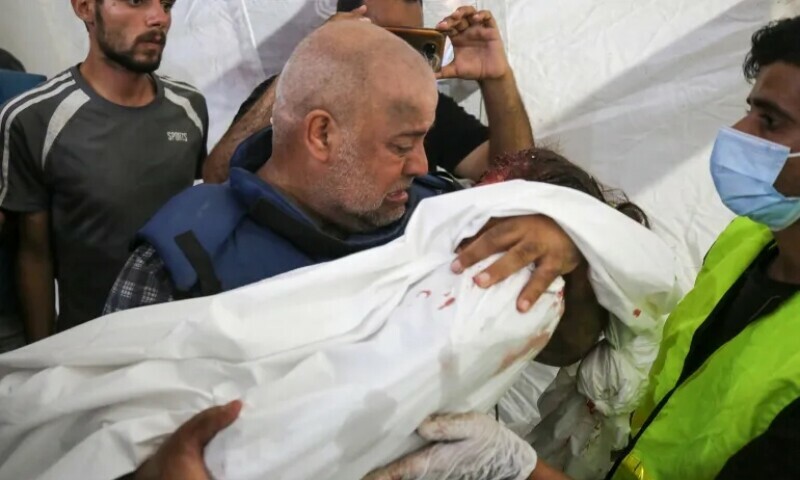 Header image: Wael Dahdouh mourns over the body of his seven-year-old daughter, who was killed along with his wife and son in an Israeli air raid in the Nuseirat refugee camp on Wednesday night. — AFP