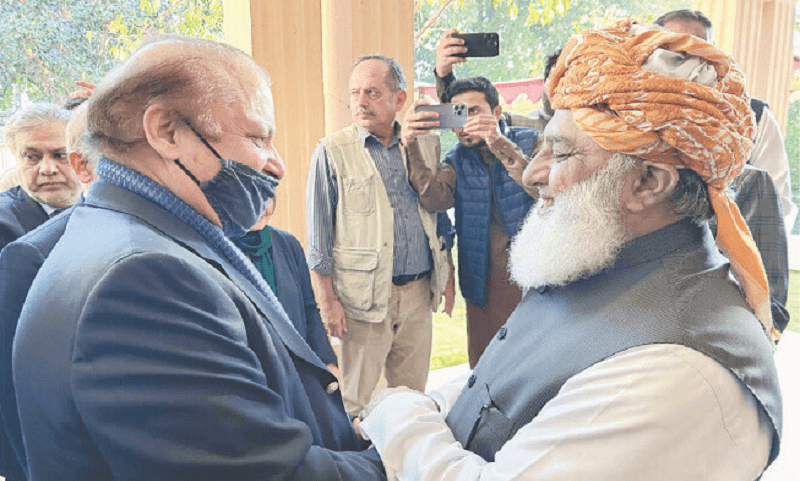 There was no statement from the PML-N regarding the meeting between the two, but JUI-F chief Maulana Fazl said both parties have reached an agreement to contest elections together.