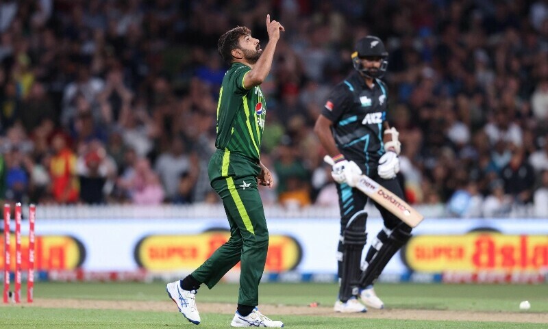 New Zealand’s remaining batters struggled, with pace bowler Haris Rauf particularly adept over the closing overs, finishing with 3-38.