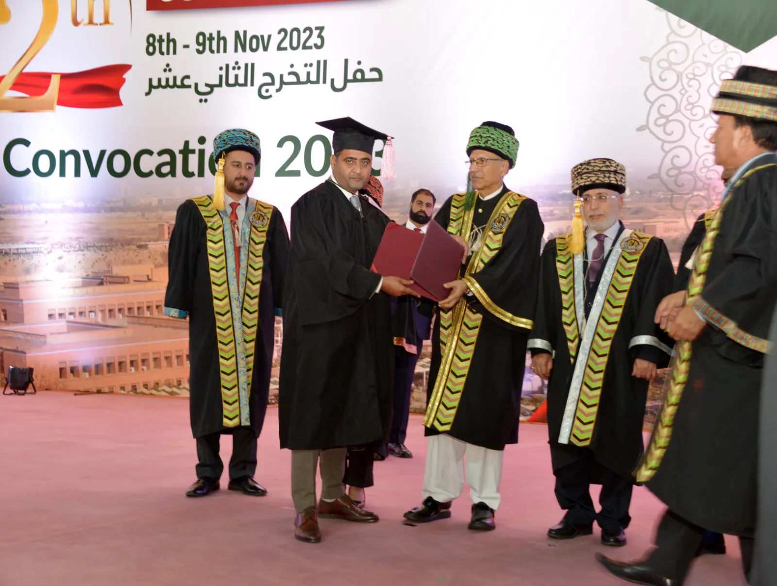 The President of Pakistan DrArifAlvi, during the 12th Convocation of International Islamic University, Islamabad, conferred upon DrAwais Bin Wasi a doctoral degree in English Literature for conducting a pioneering work on Post-1989 Anglophone Kashmiri Literature, produced by Indigenous Kashmiri writers in the backdrop of post-1989 milieu when a full-blown mass uprising erupted in the valley.