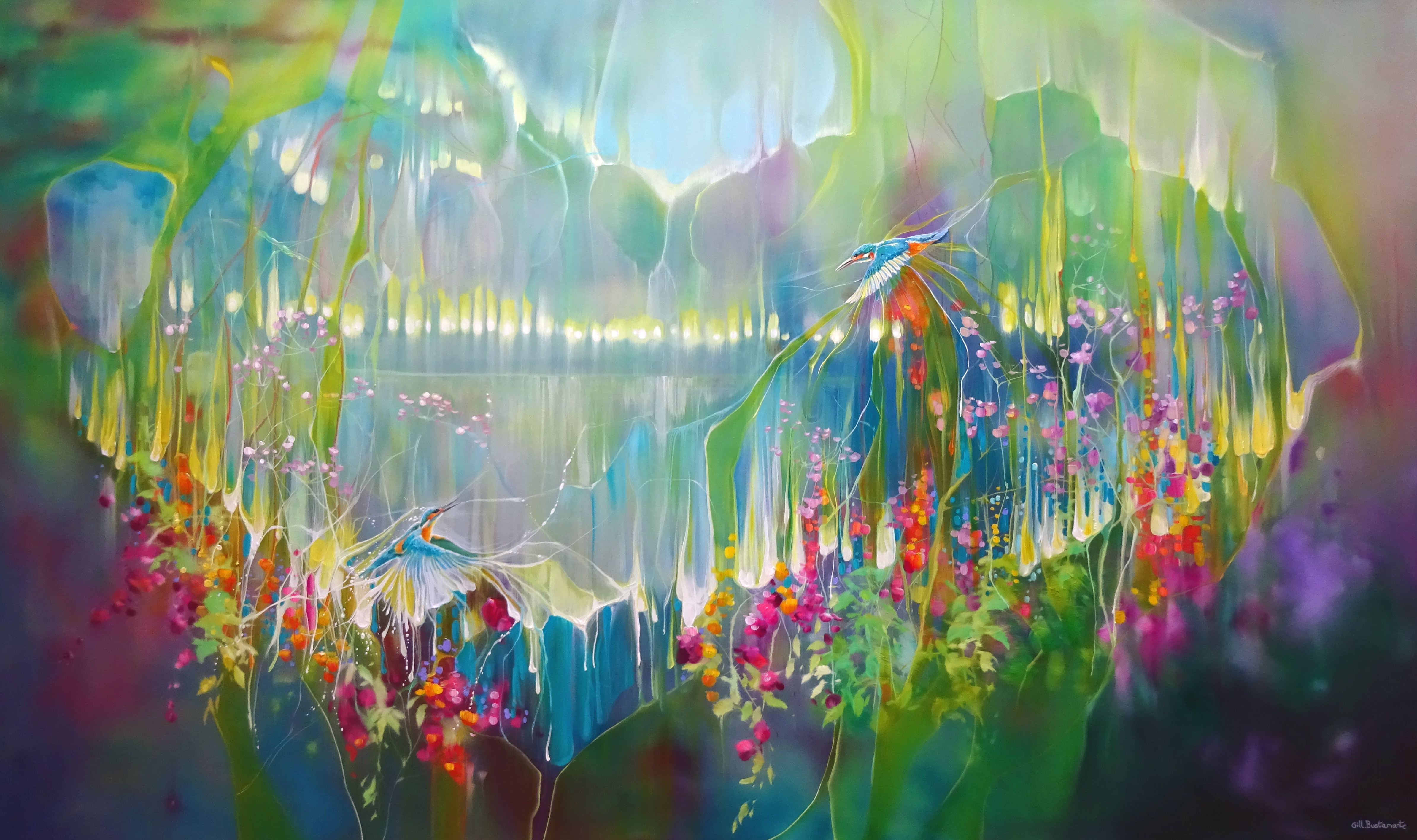 Gill Bustamante specialises in creating expansive contemporary oil canvases featuring vast landscapes and seascapes. Her distinctive painting technique seamlessly blends elements of expressionism, impressionism, semi-abstract art, art nouveau, and a unique concept she calls “memory impressionism.” She walks around rural areas, to look at and absorb what she catches her eye and revels in the experience. Then returns home to try and capture an essence of the place from her memory.